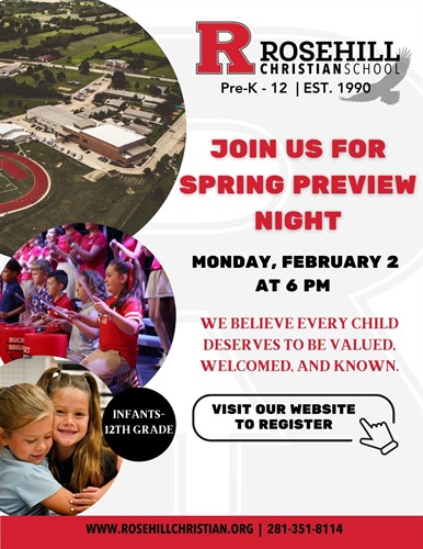 Thinking about joining the Rosehill Christian School family? Come see what we’re all about at our Fall Preview Night!